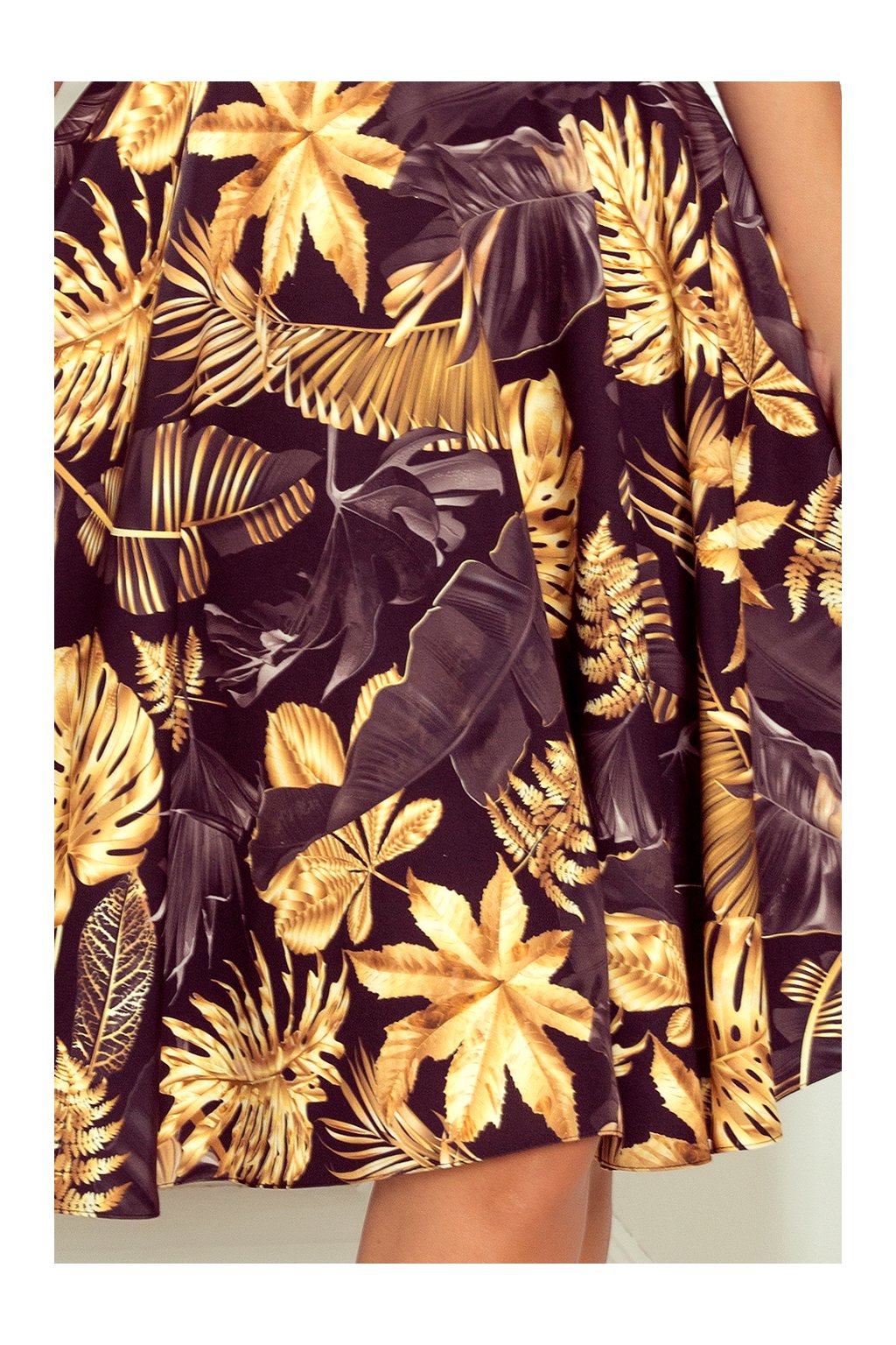 114-13 Šaty - srdcovitý výstřih - Zlaté listy