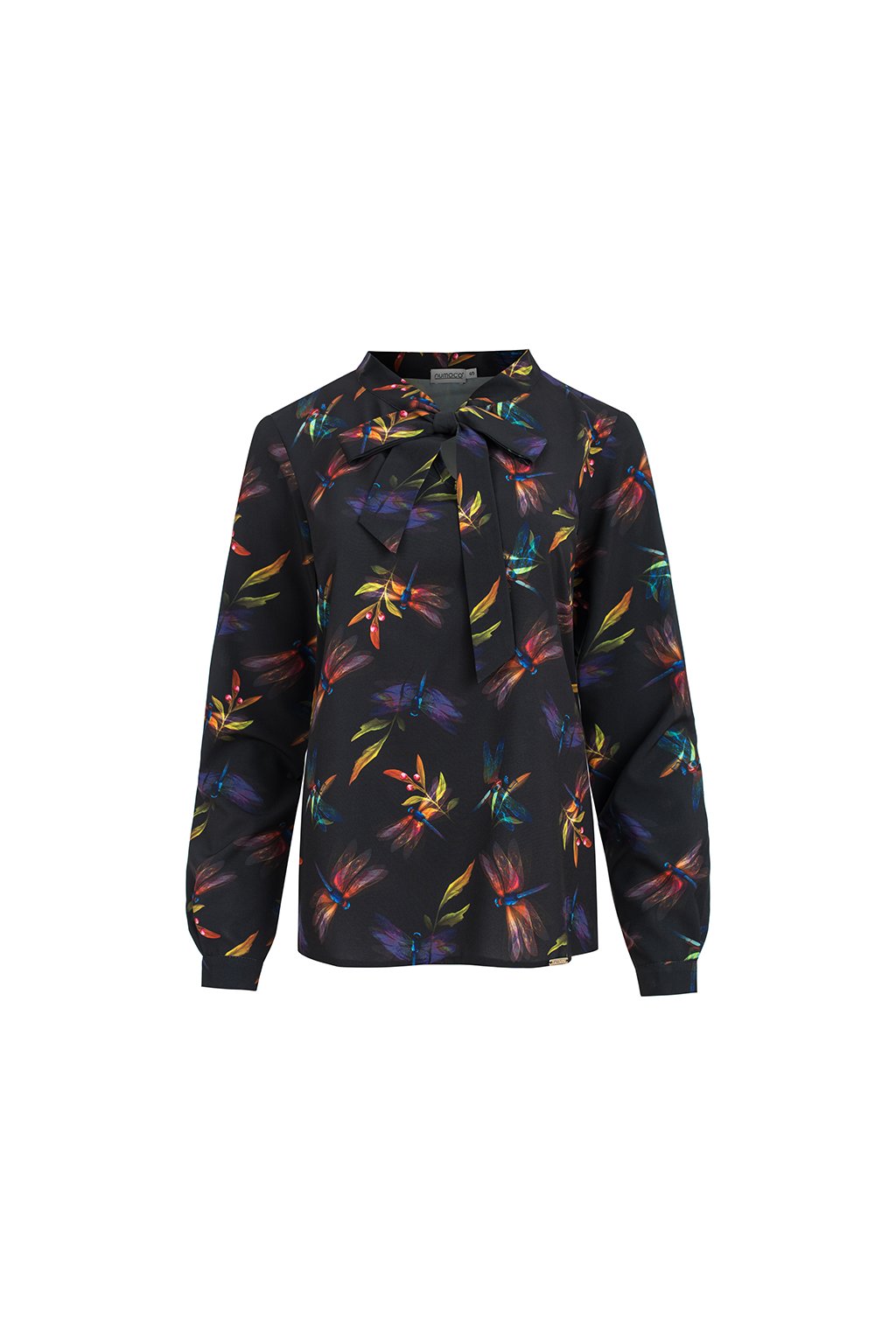 Blúzka s vázáním - šitá z příjemného materiálu. Tmave modra v barevné vážky. Numoco