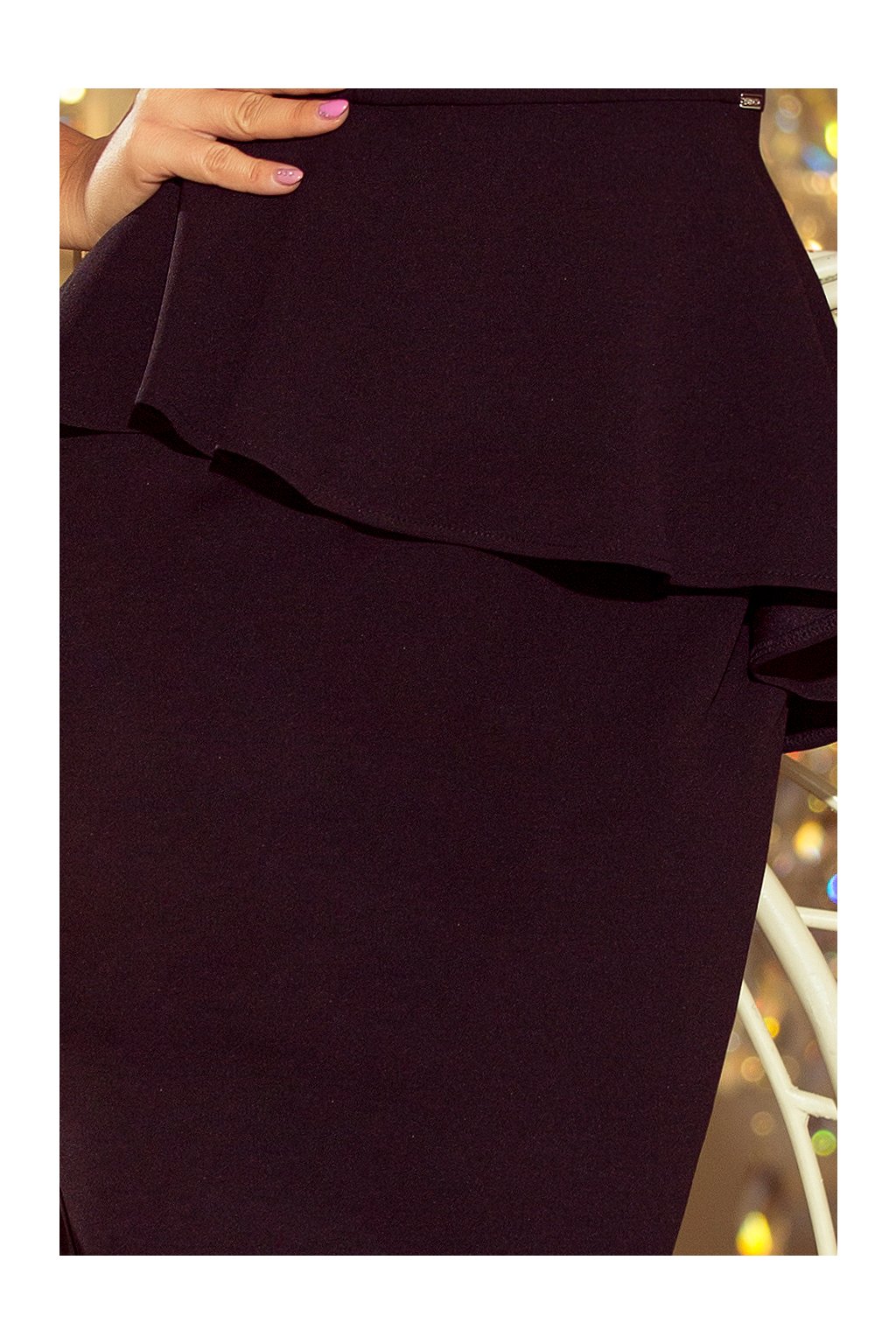 Elegantní midi šaty s asymetrickým lemem a malým rukávem - černé. Značka Numoco.