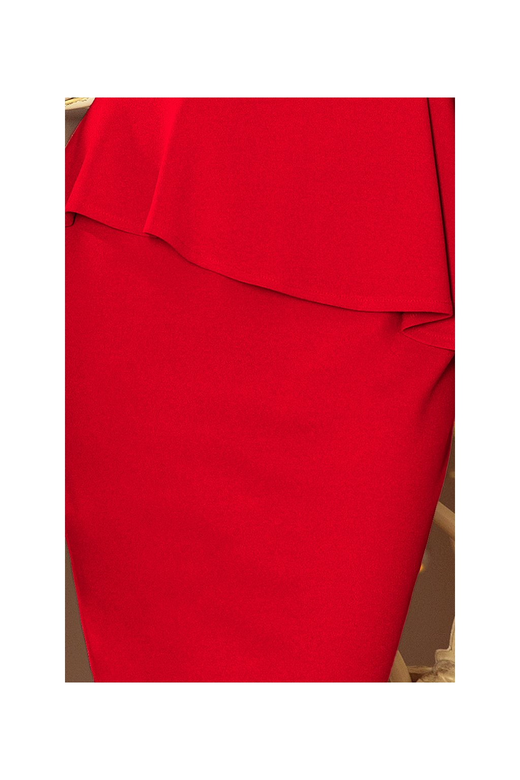 Elegantní midi šaty s asymetrickým lemem a malým rukávem - červené. Značka Numoco.