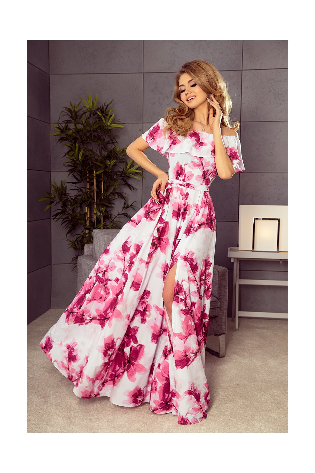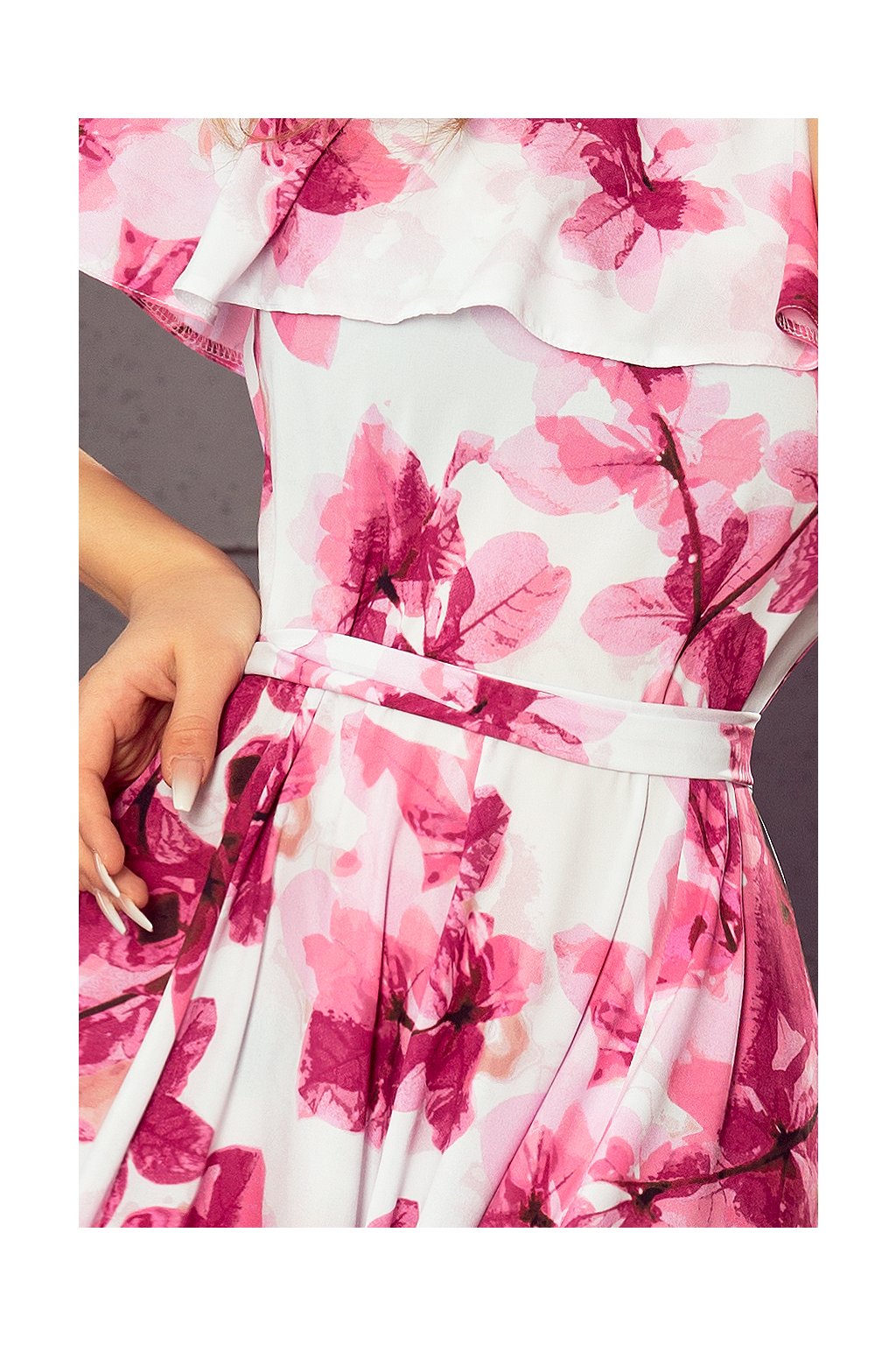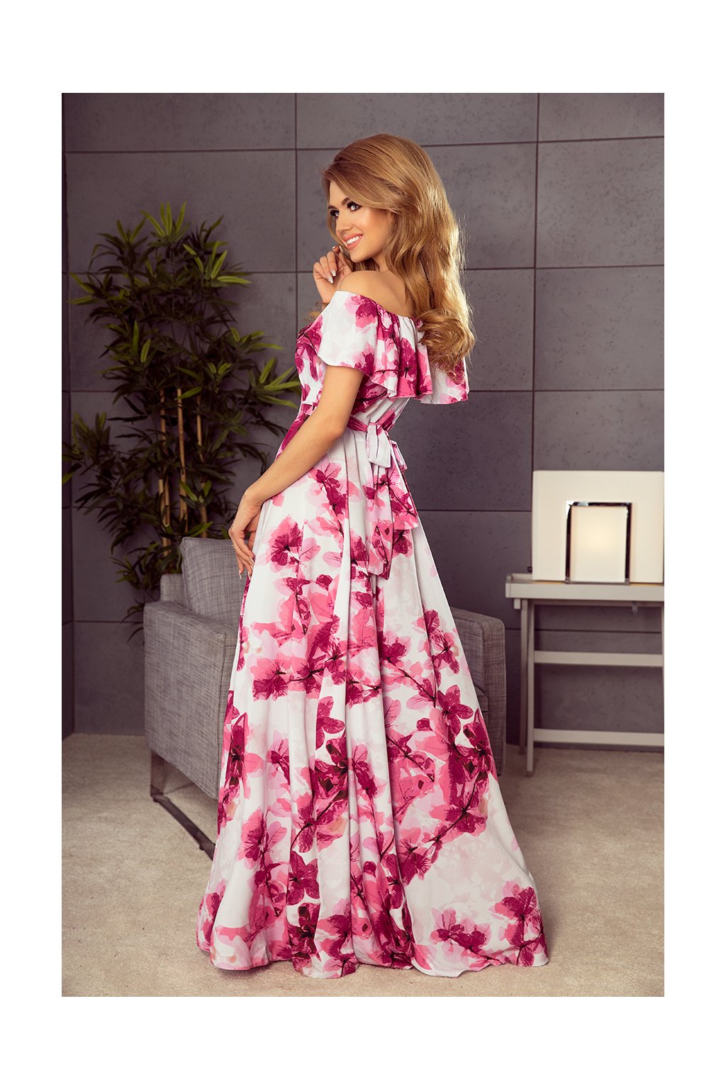 194-2 Dlouhé šaty s volánky - velké růžové květy