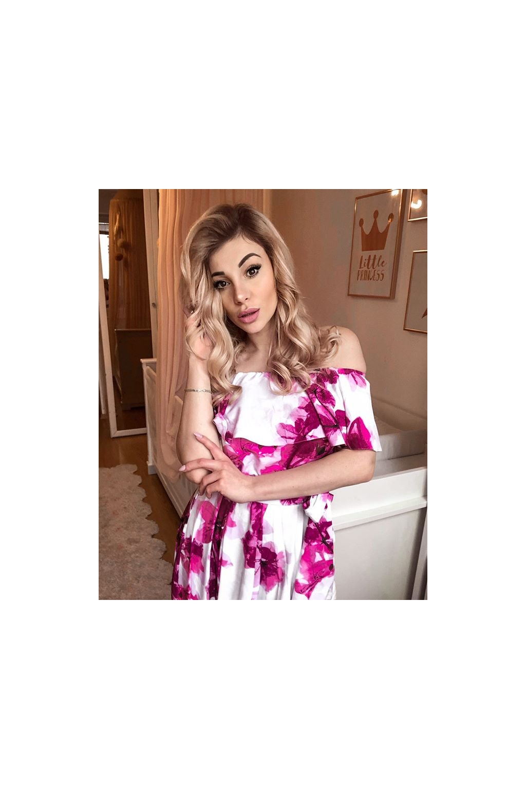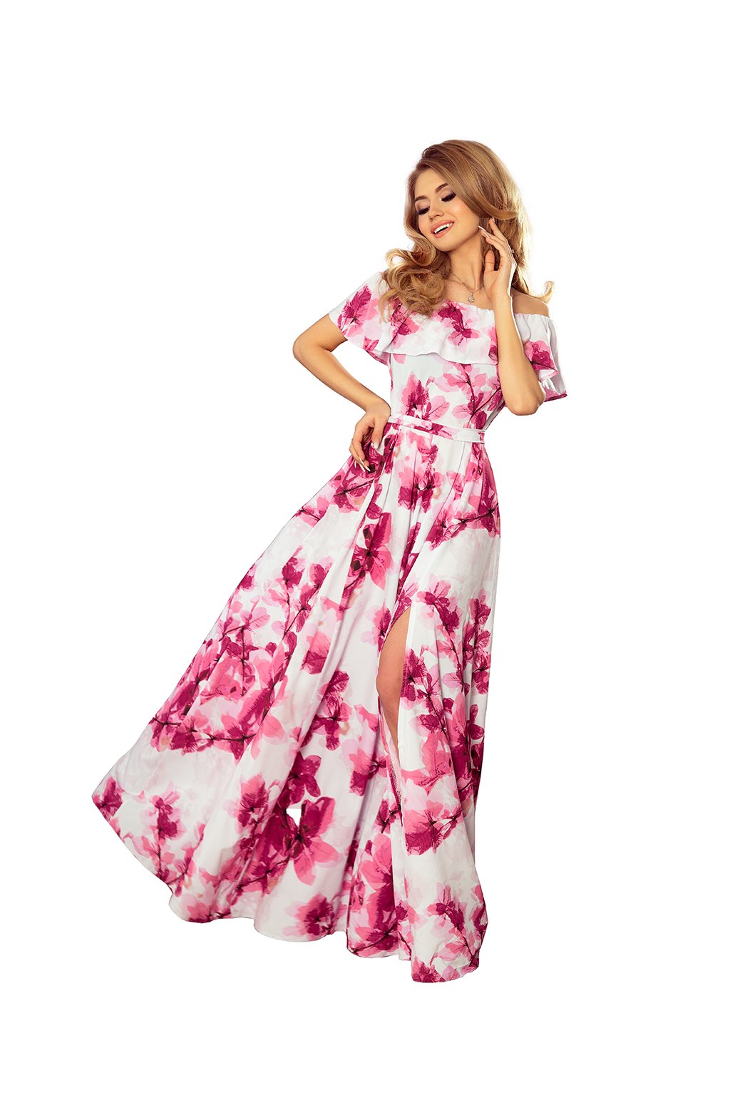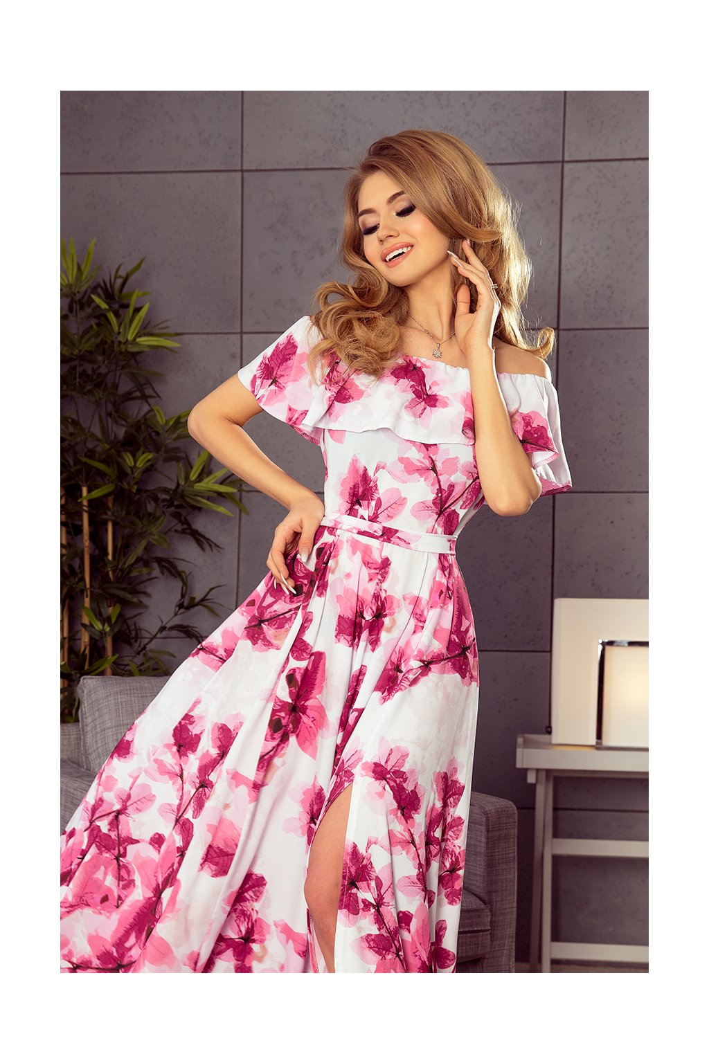 194-2 Dlouhé šaty s volánky - velké růžové květy