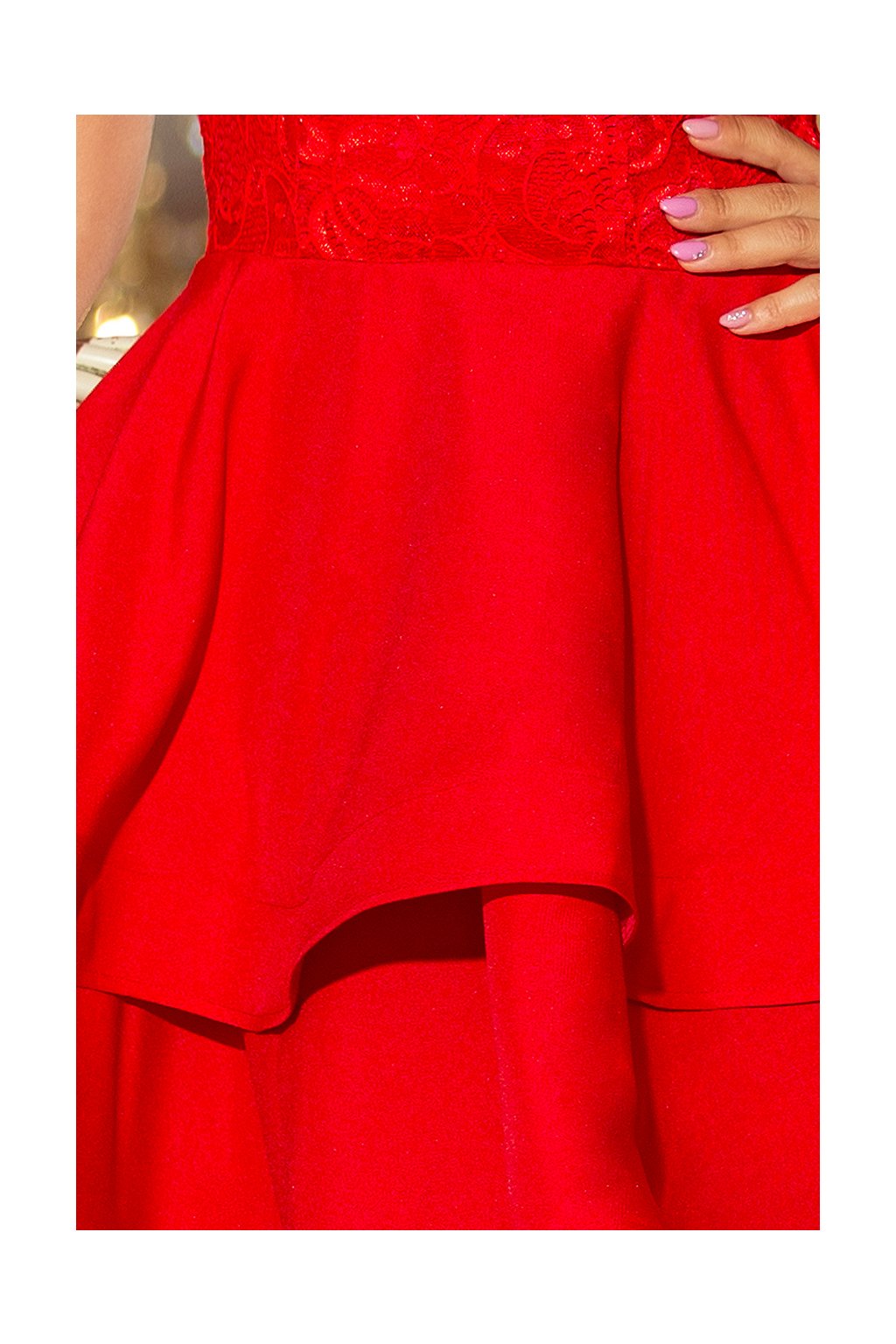 LAURA - šaty s bledou sukní a krajkou - červená. Uchycena vzadu pomocí zipu. Značka Numoco. Polský výrobek.