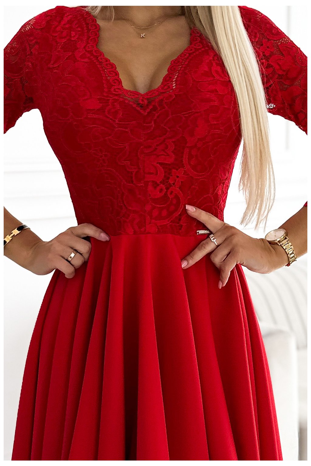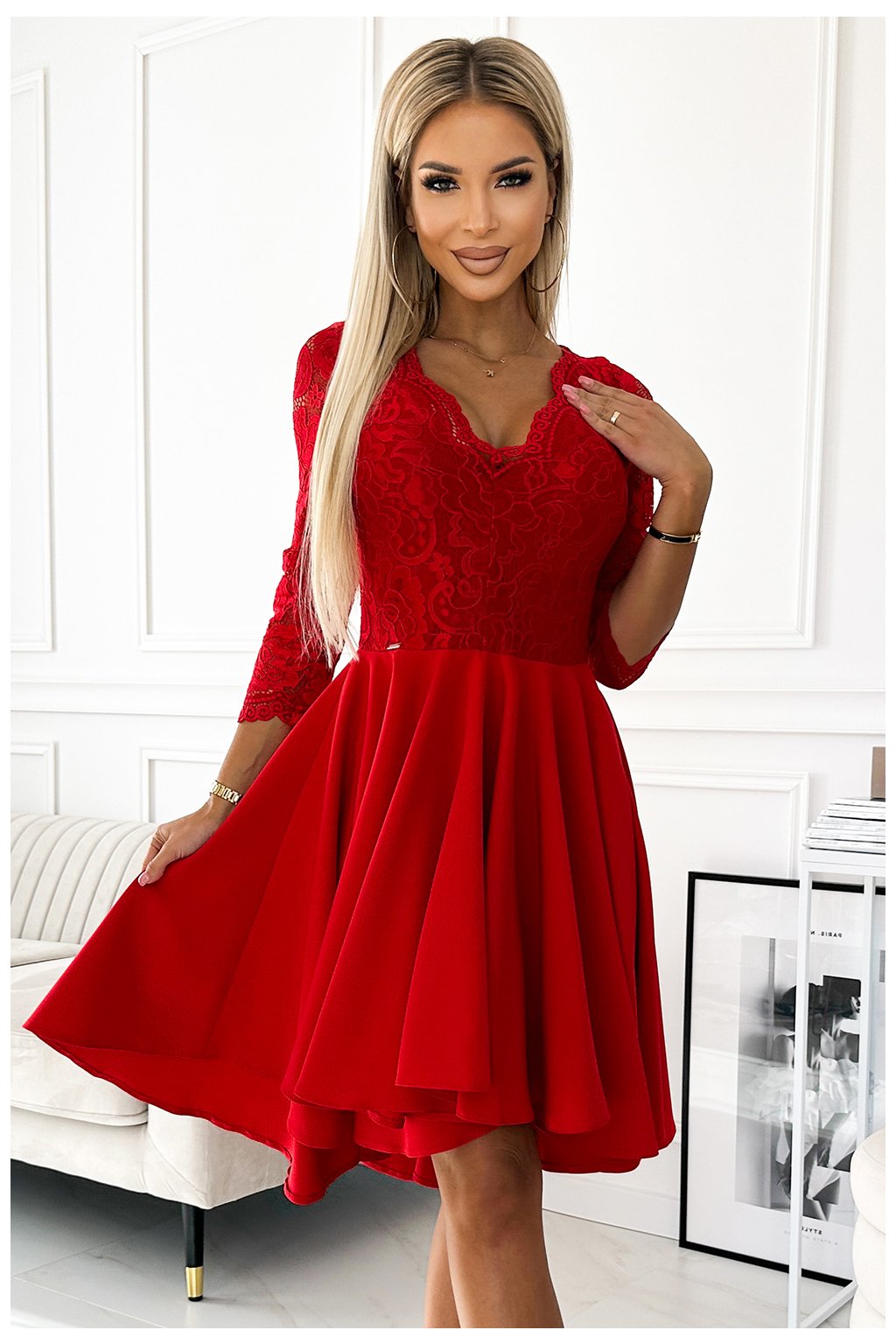 210-16 NICOLLE - šaty s krajkovým výstřihem a delšími zády - červené