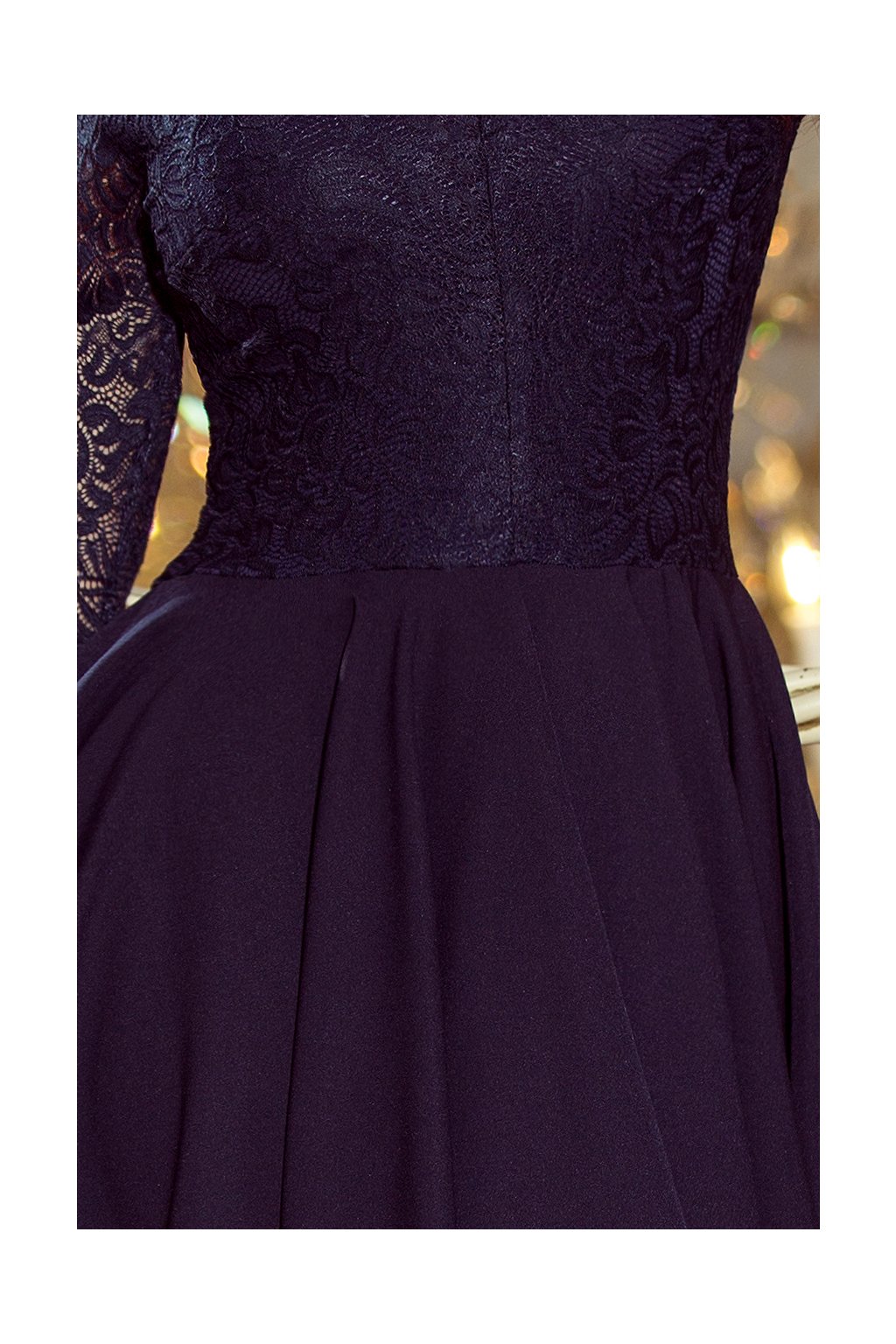 210-2 NICOLLE - Exkluzivní šaty s krajkou - tmavě modré