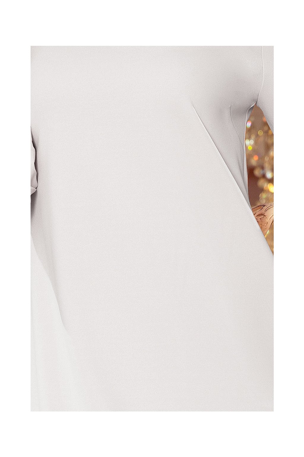LUCY - skromné a krásné šaty s záhybů - šedá barva. Materiál: 95% polyester, 5% elastan. Značka numoco.