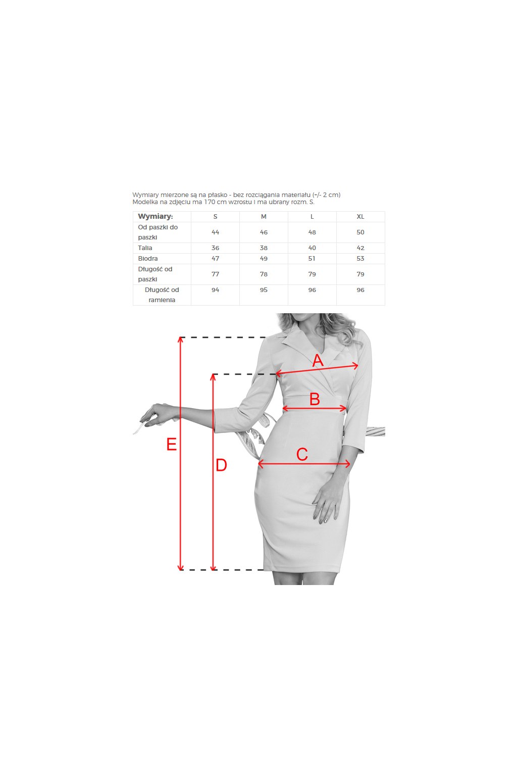 The woman in the photo is 170 cm tall. Size S.