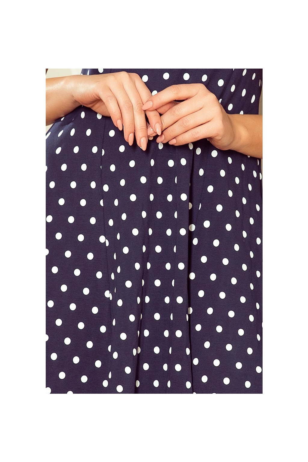 241-1 STELLA Šaty s výstřihem - tmavě modrá v puntičkách