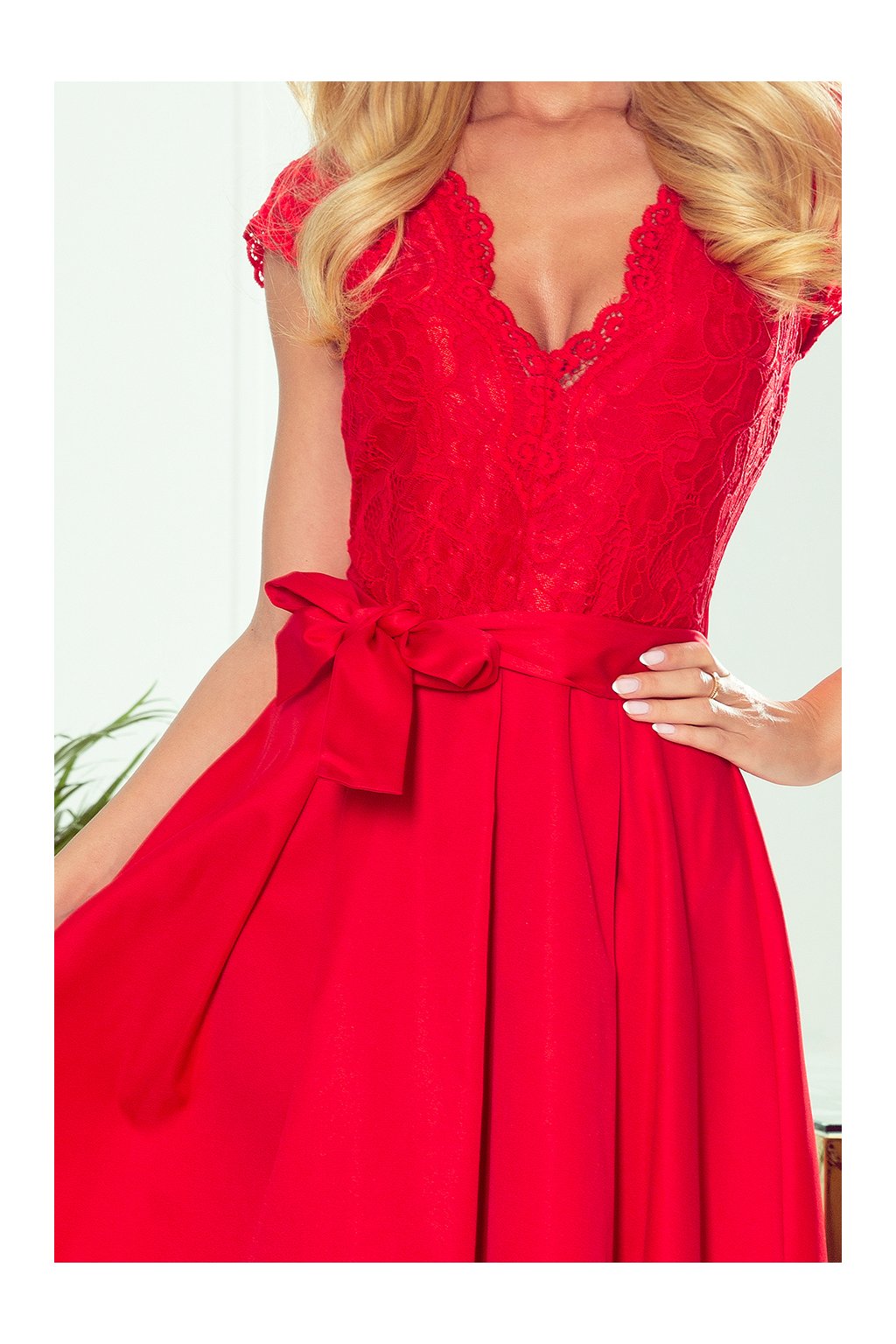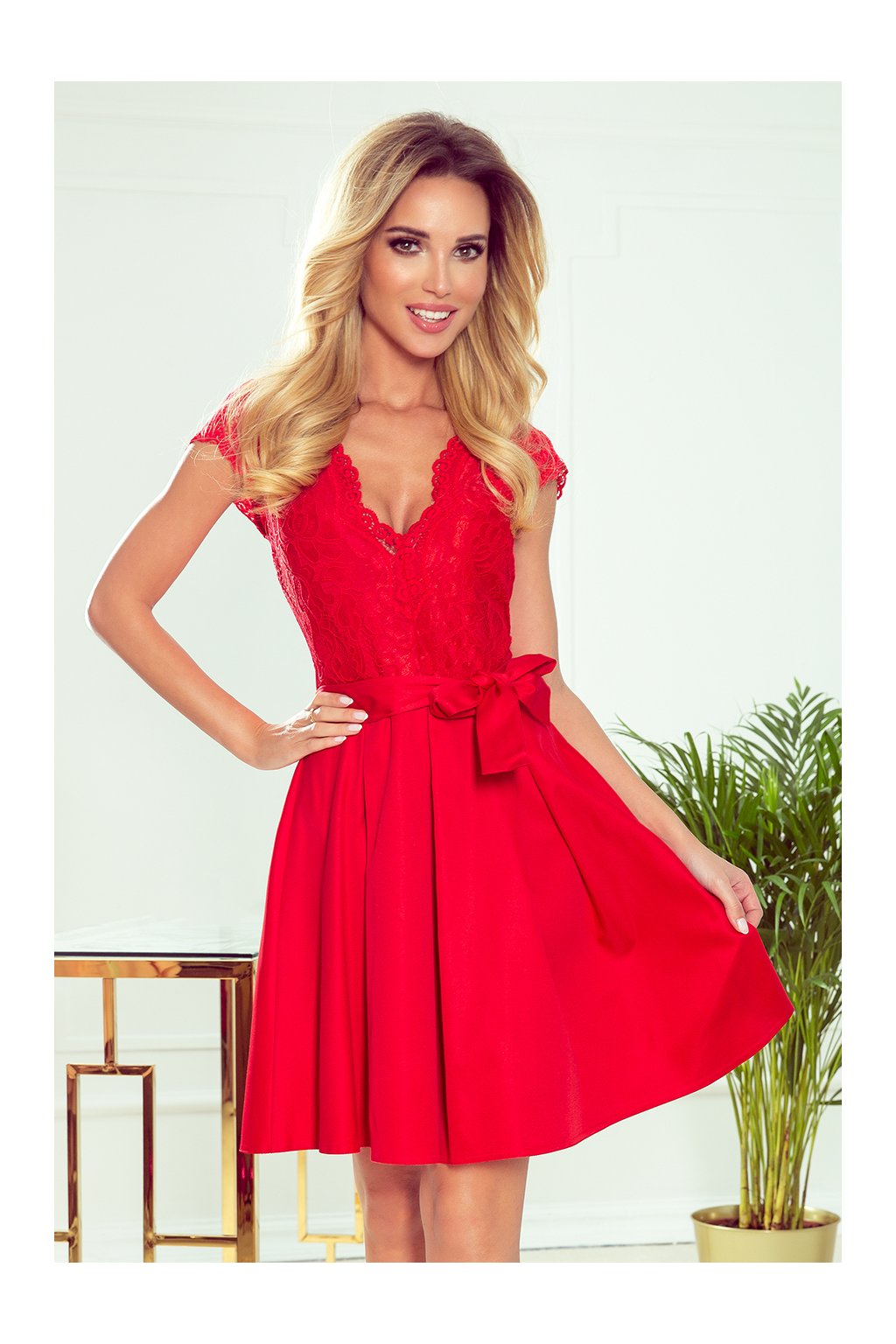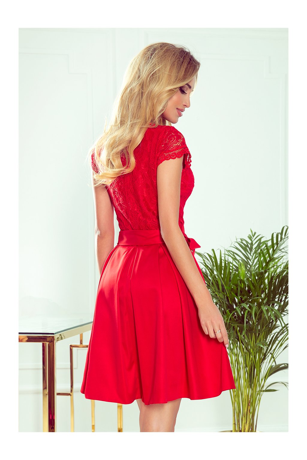 242-4 ANNA šaty s výstřihem a krajkou - červená barva