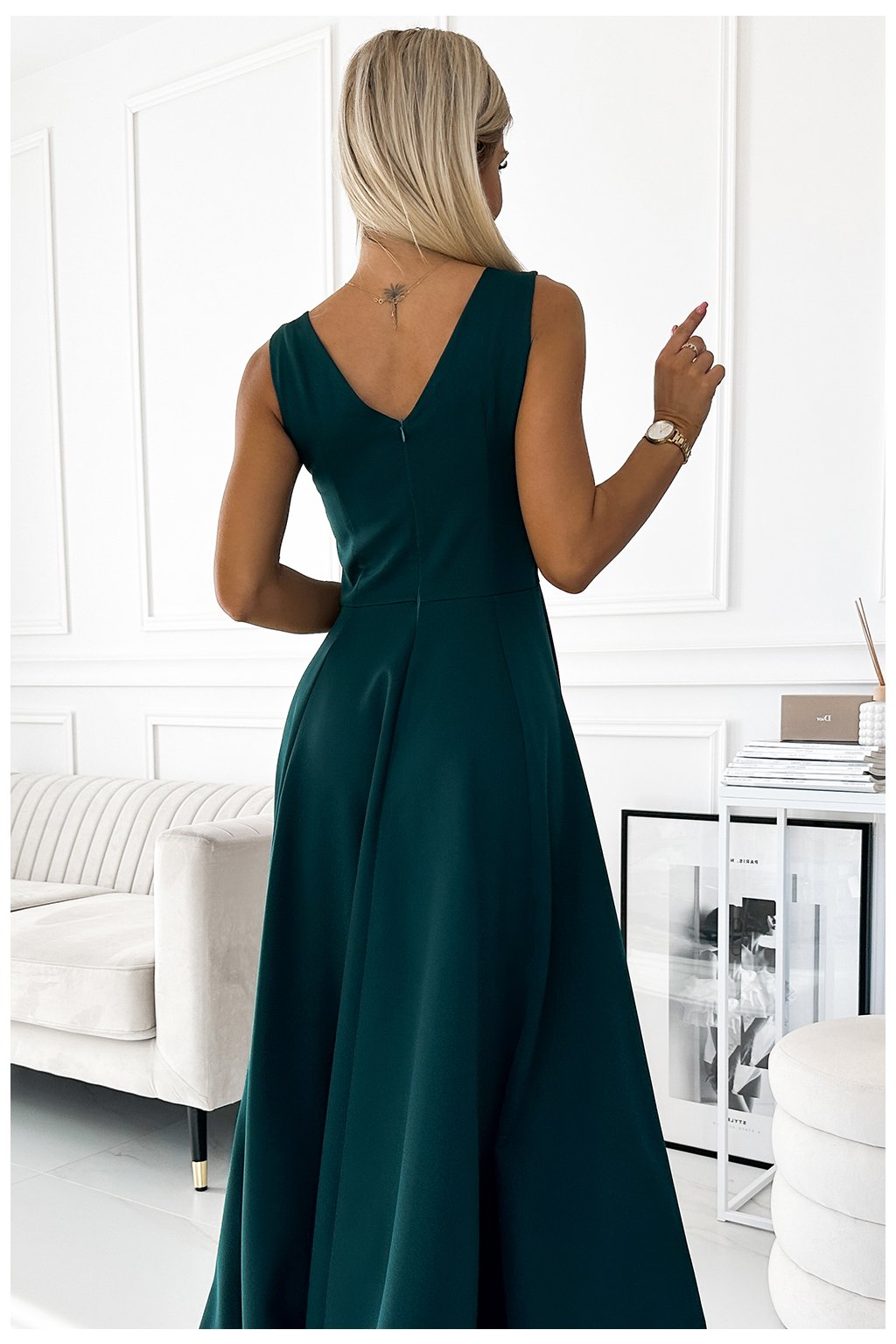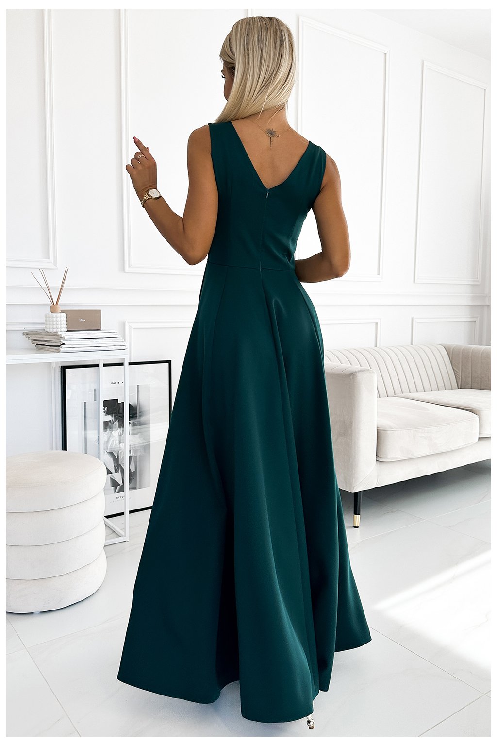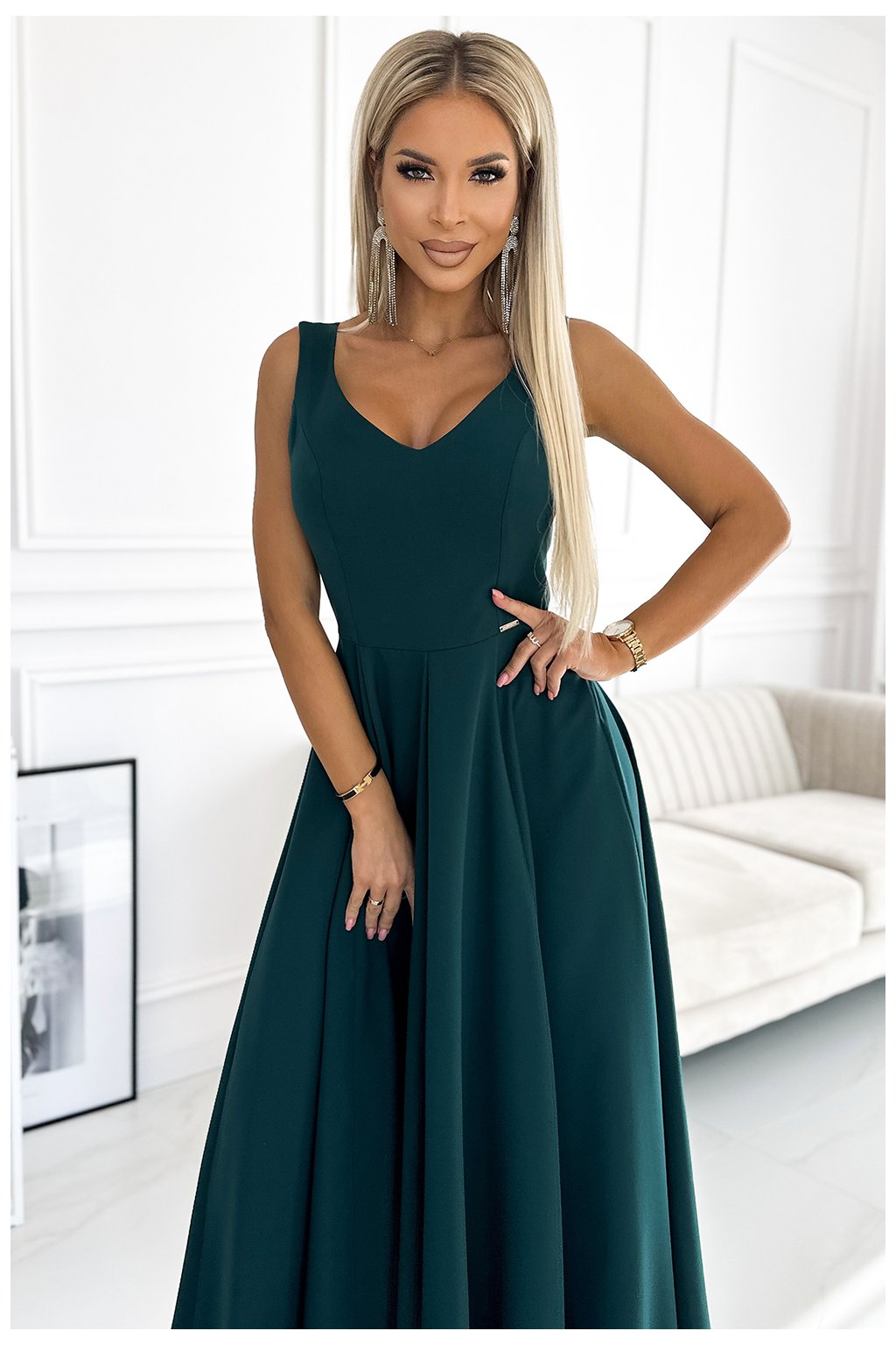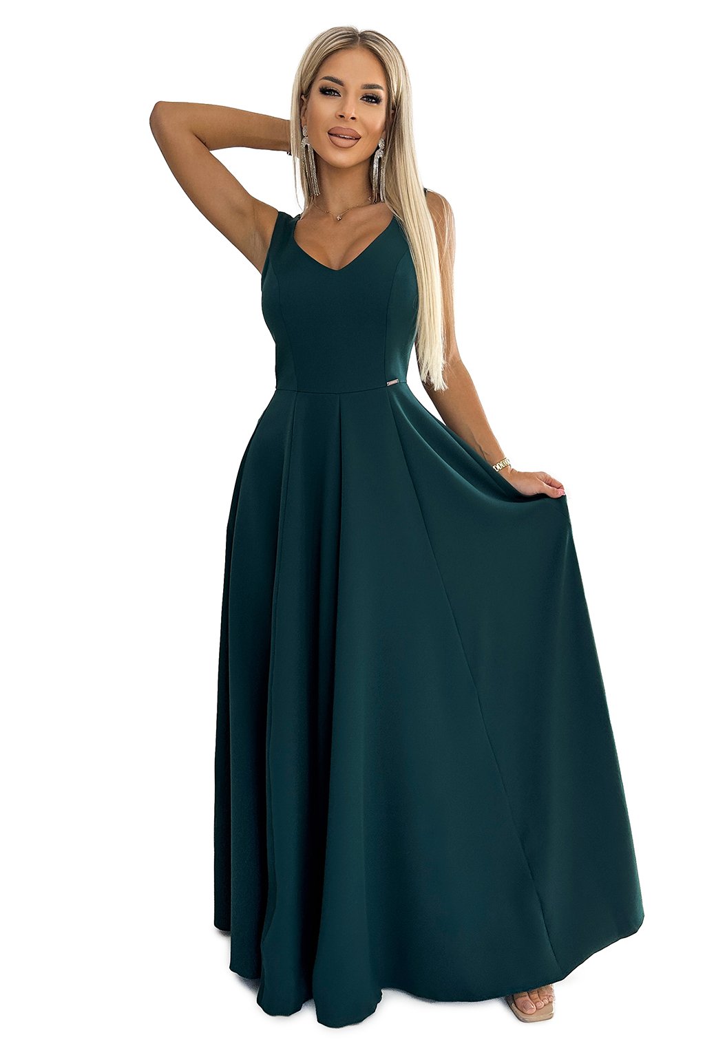 246-5 CINDY dlouhé elegantní šaty s výstřihem - zelené