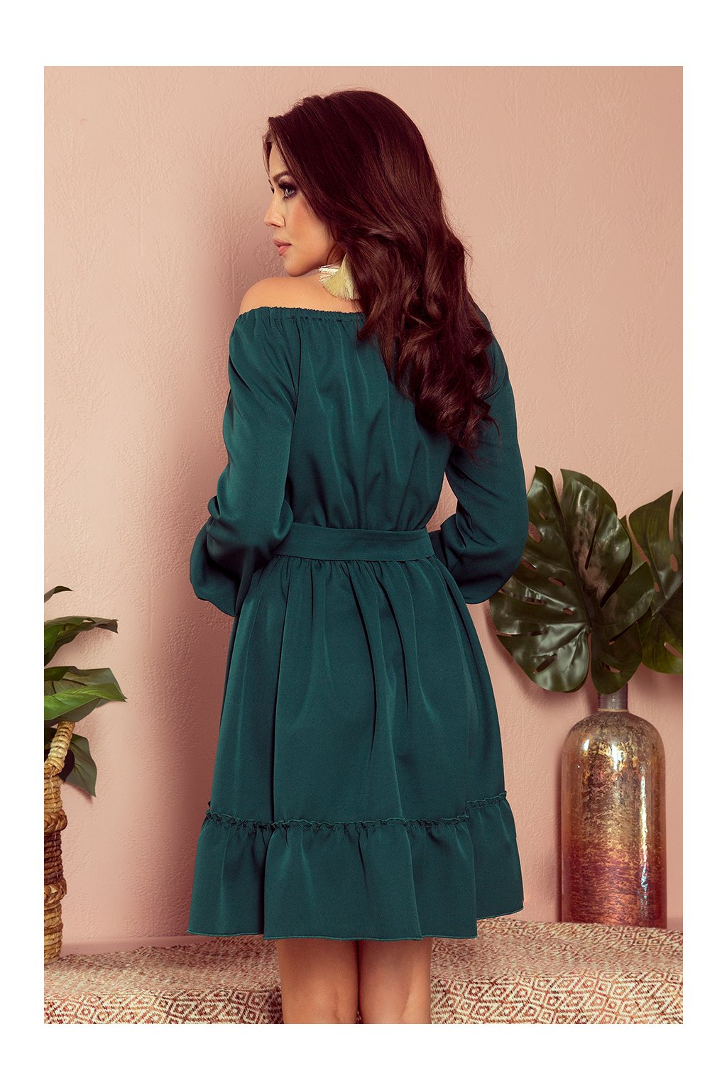 DAISY Šaty s volánkami a opaskem - zelené. Na ramenou, v pase a na rukávech je našita elastická páska. Polská produkce. Značka numoco.