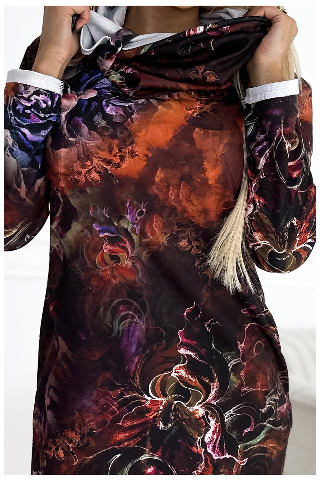 Irene - pohodlné, teplé rolákové šaty. Hnědý vzor. Vyrobeno z elastického materiálu příjemného na dotek. Značka numoco. Polský výrobek.