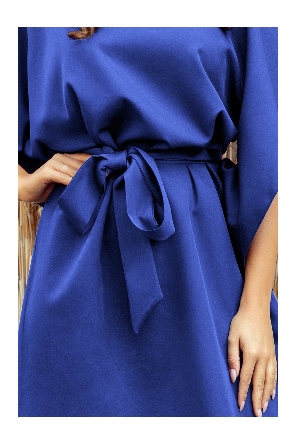 SOFIA Motýlí šaty s páskem - modrá barva. Značka Numoco. Polská výroba.