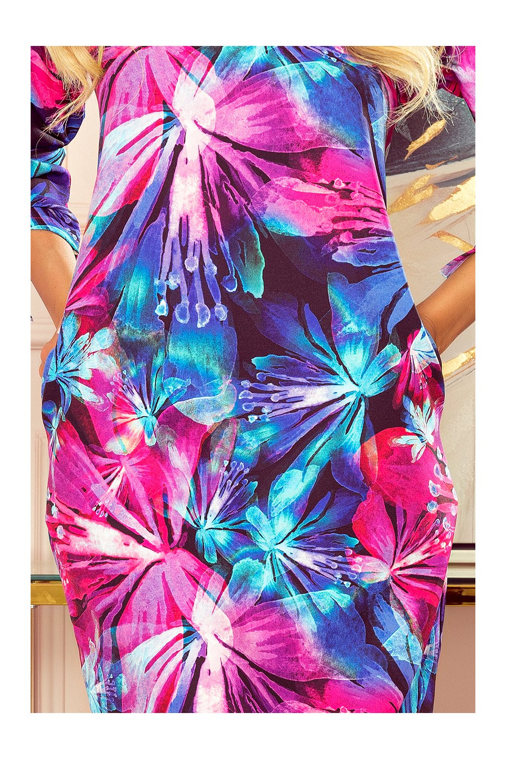 323-1 Pohodlné šaty OVERSIZE - modré a růžové květy