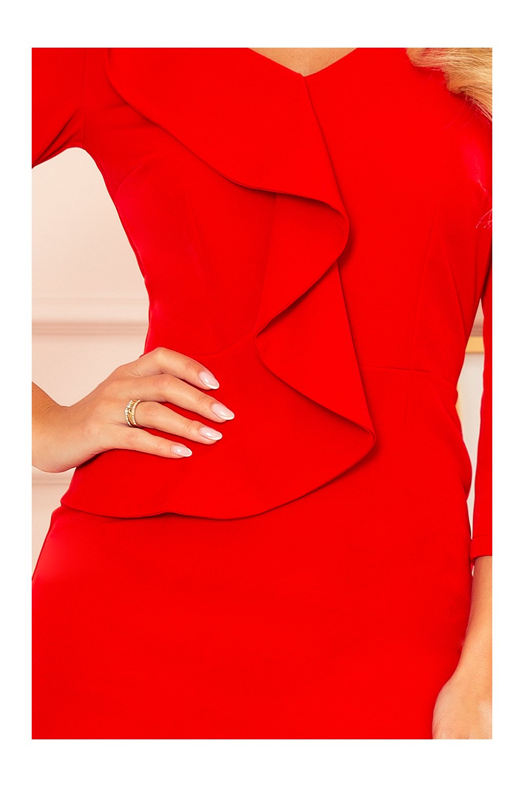 327-2 Elegantní šaty s volánkem a výstřihem - červené