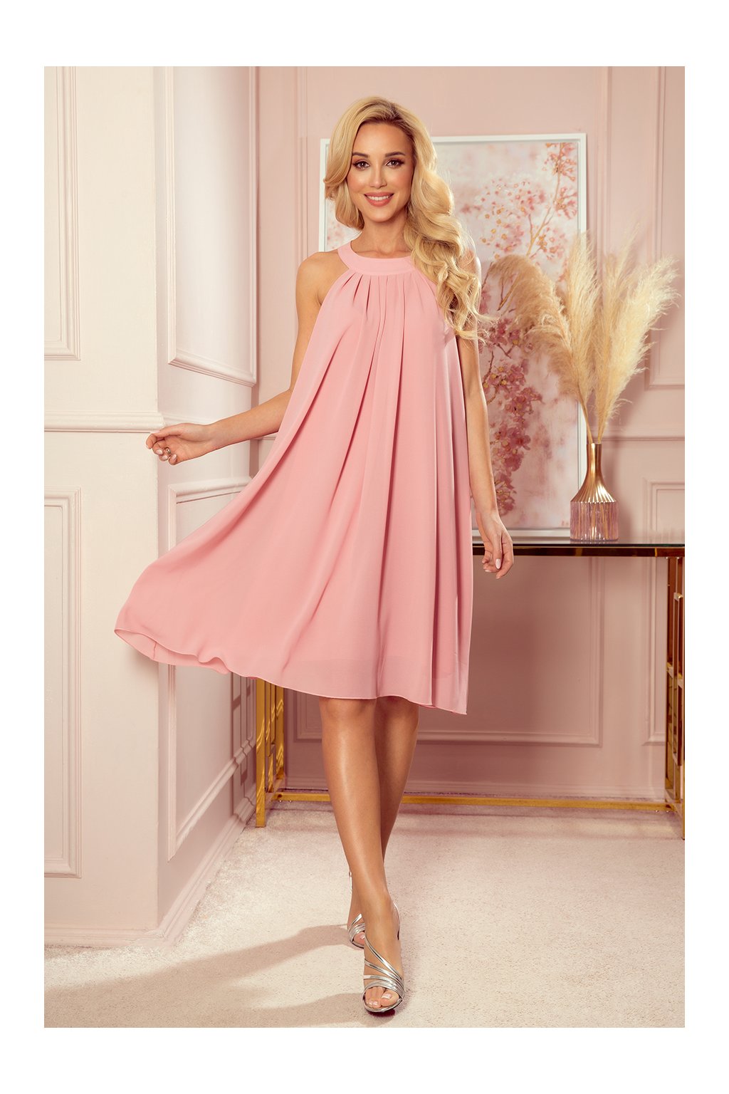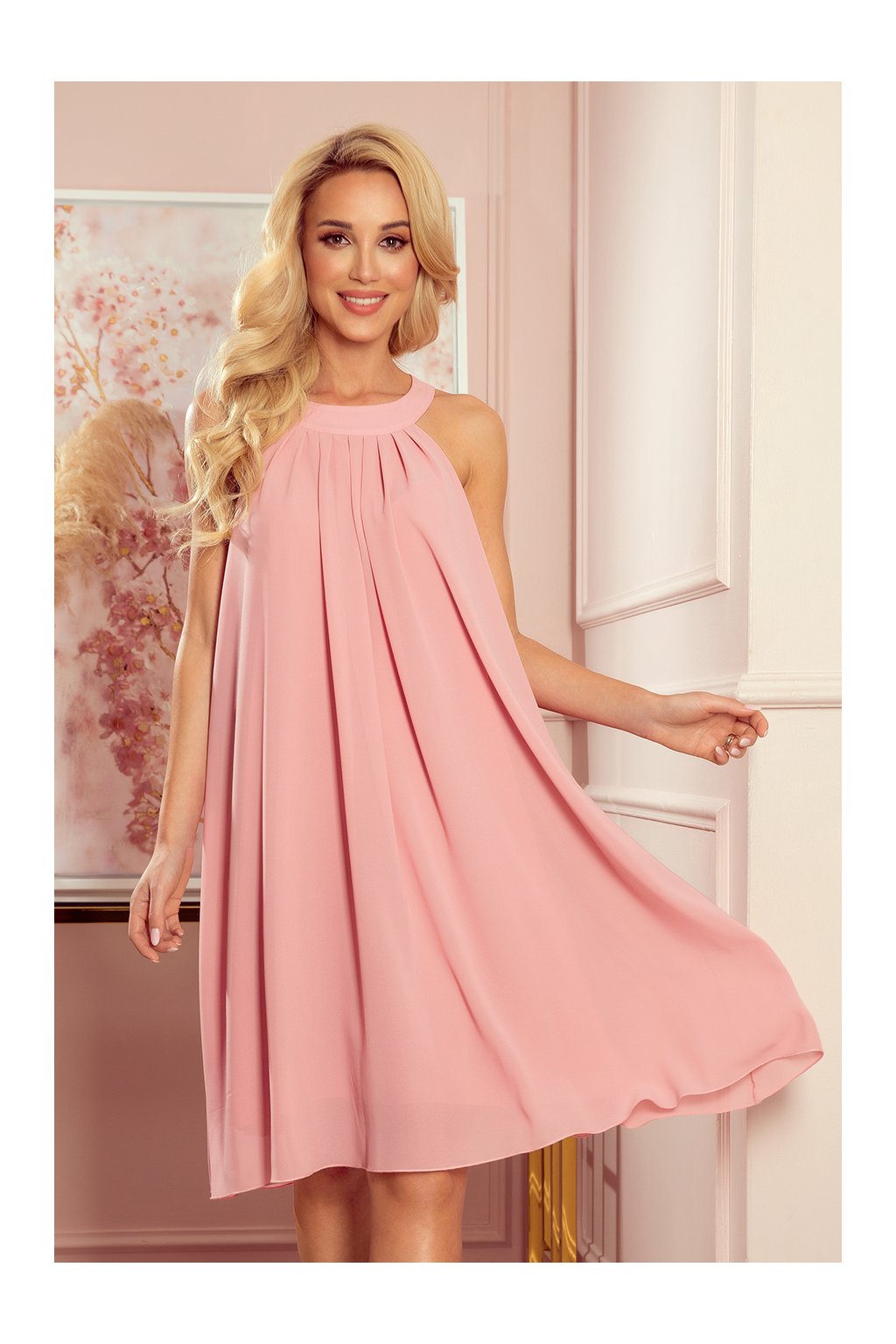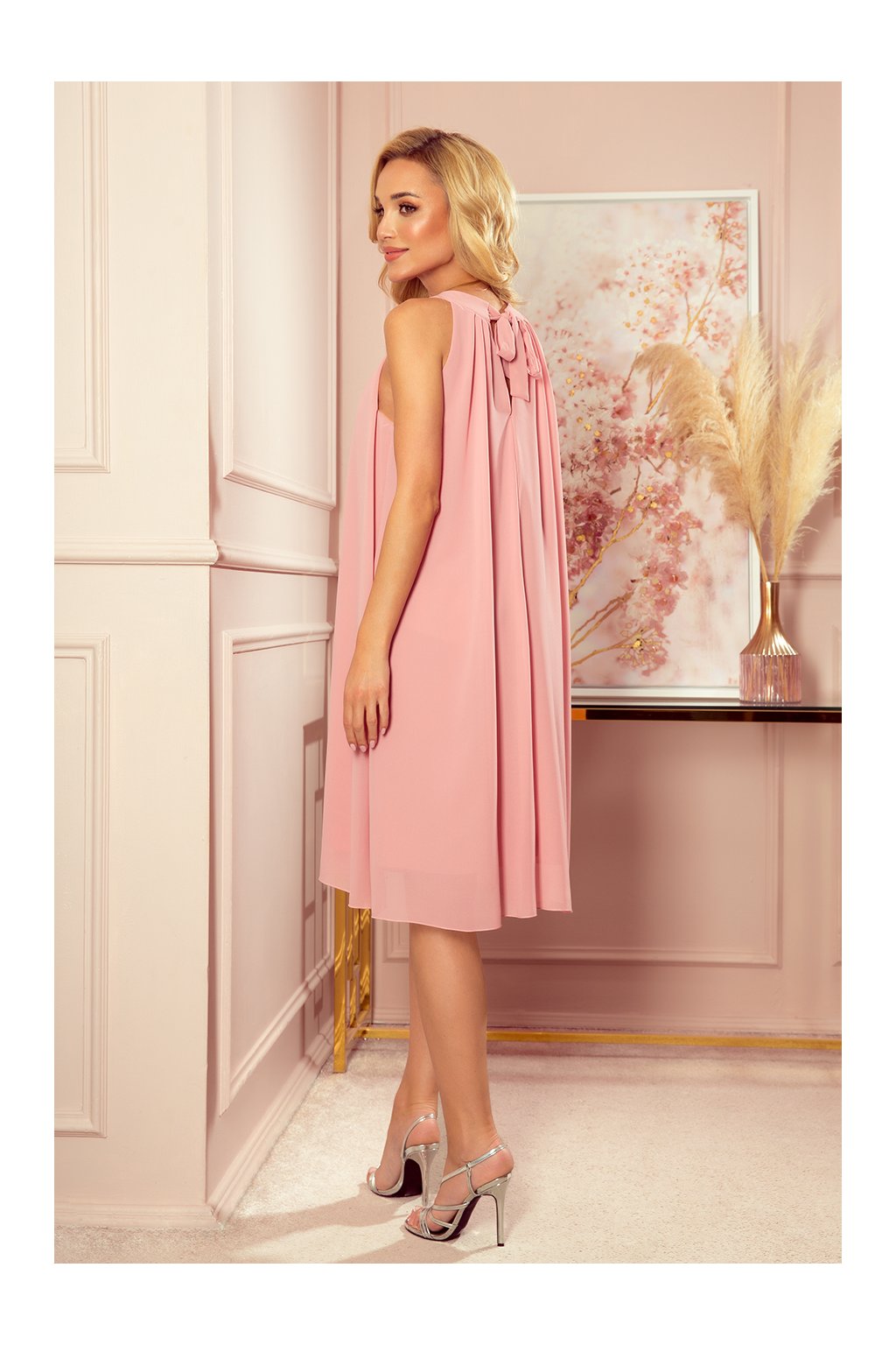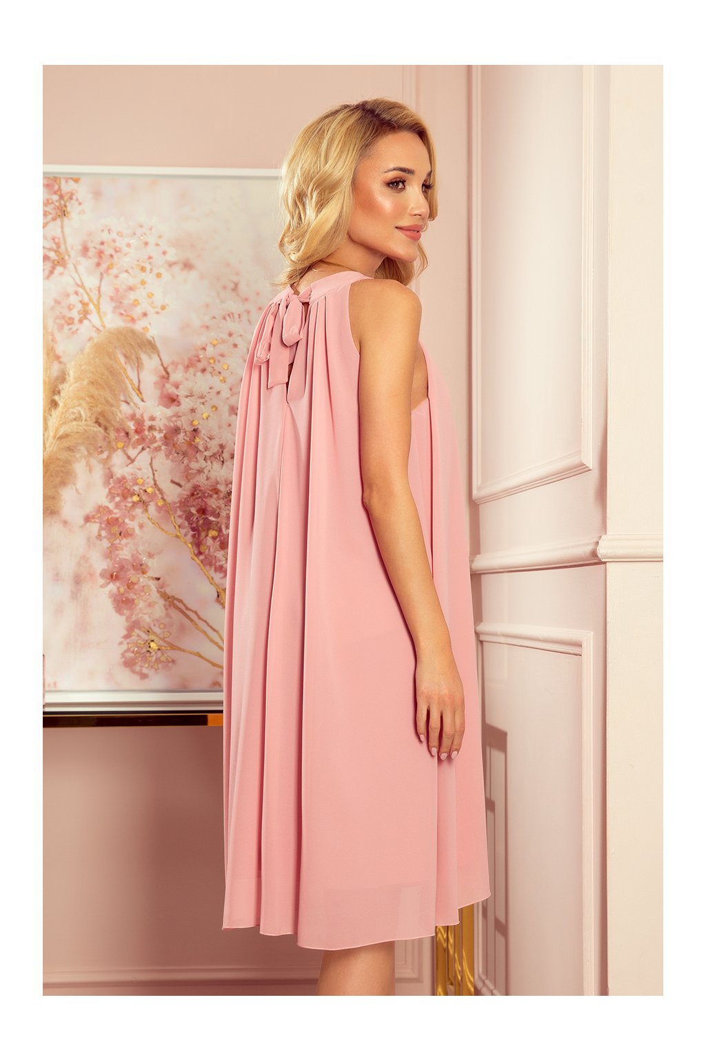 Alizee - šifónové šaty s opaskem a kravatou na zádech. Barva: prášková růžová. Značka Numoco. Polská produkce.