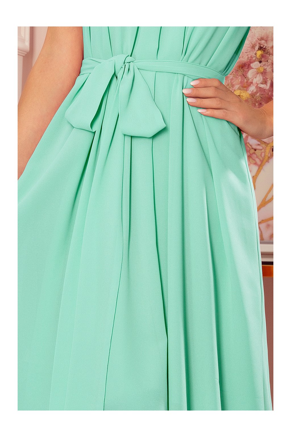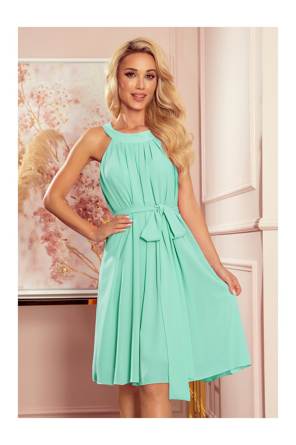 Alizee - šifónové šaty s opaskem a kravatou na zádech. Mátová barva. Značka Numoco. Polská produkce.