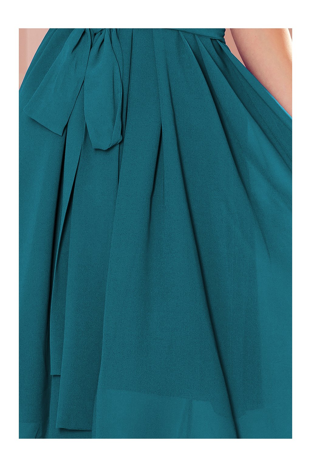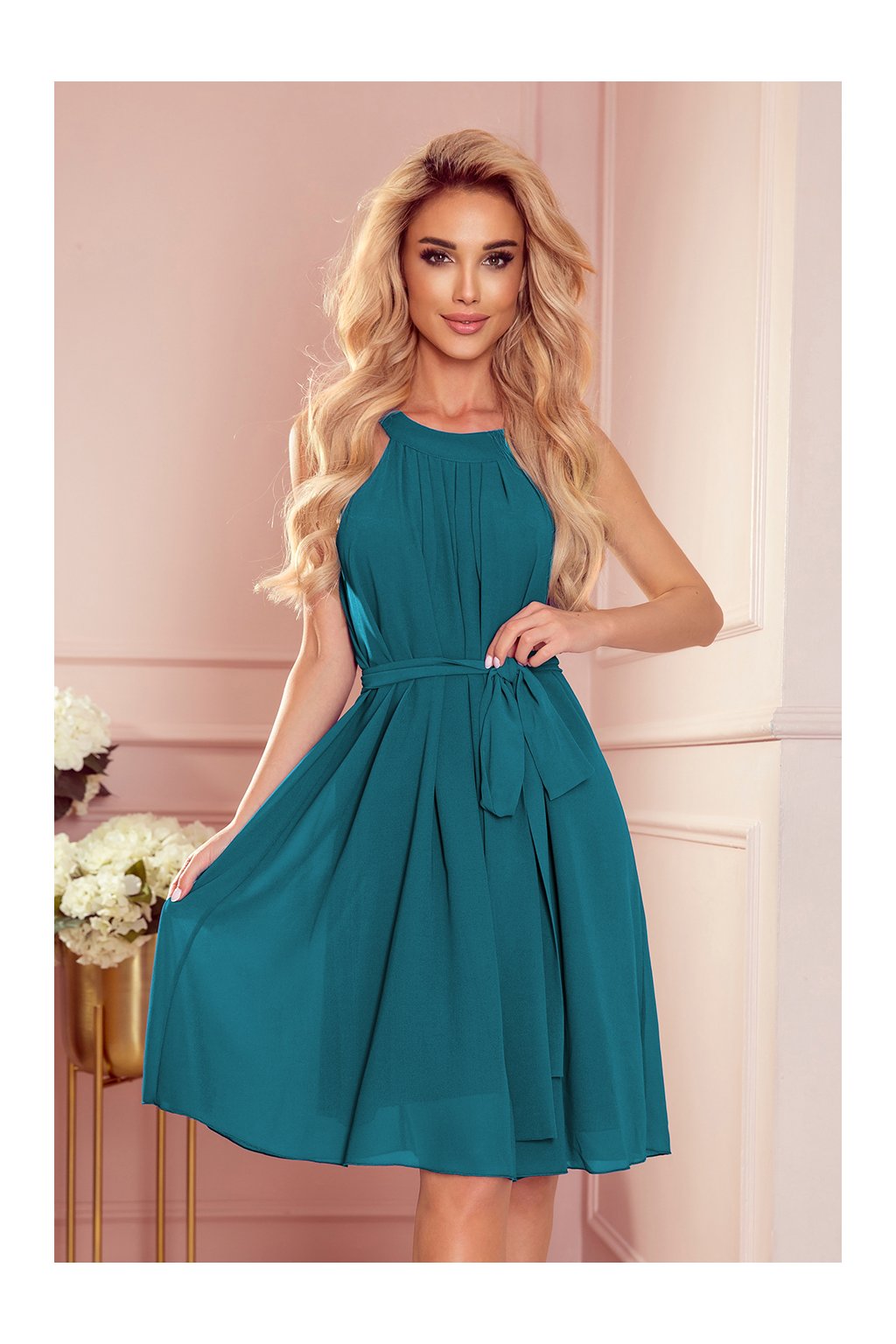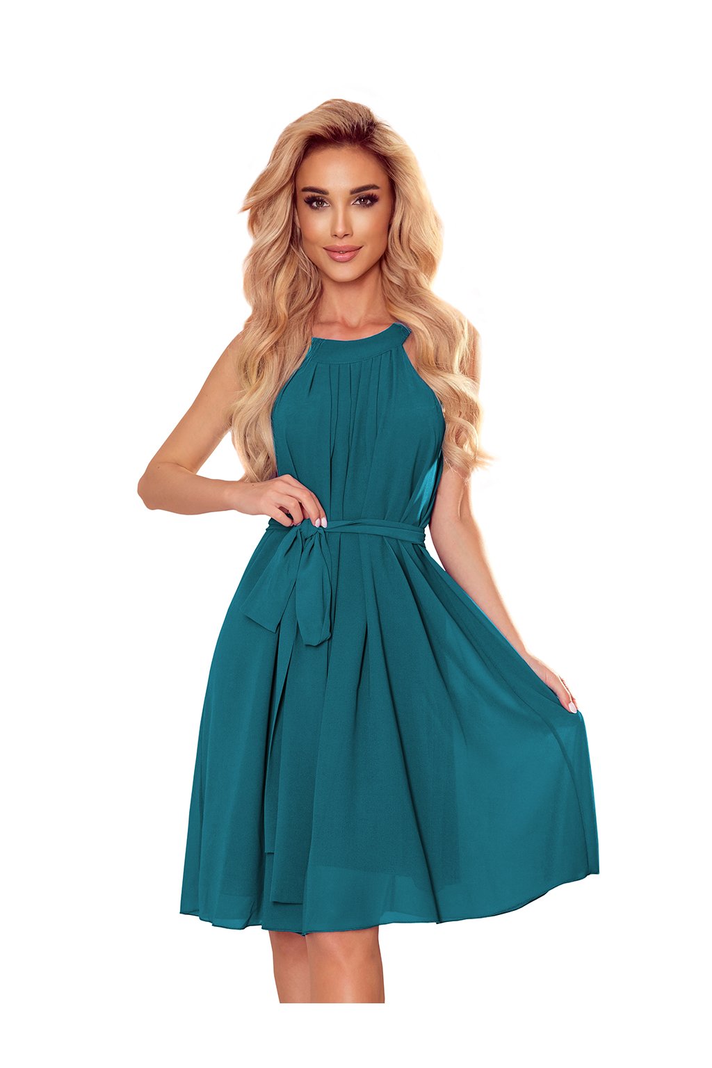 Alizee - šifonové šaty s páskem a zavazováním na zádech. Barva moře. Značka Numoco. Polská výroba.
