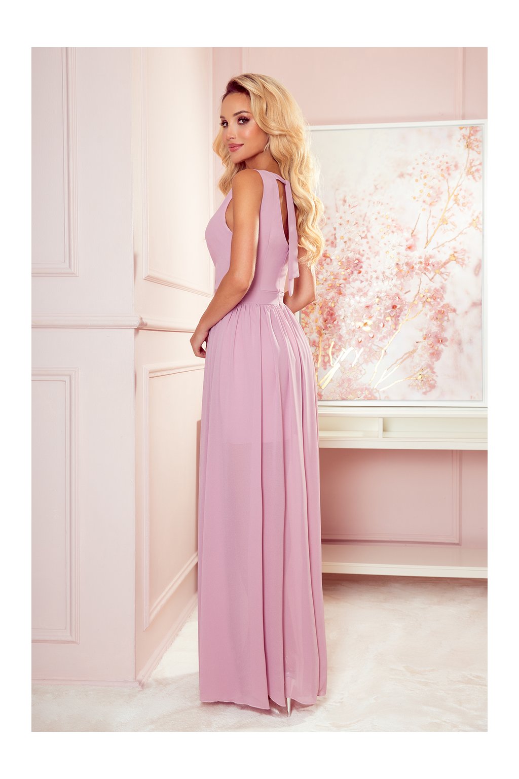 362-3 JUSTINE Dlouhé šaty s výstřihem a zavazováním - špinavě růžové
