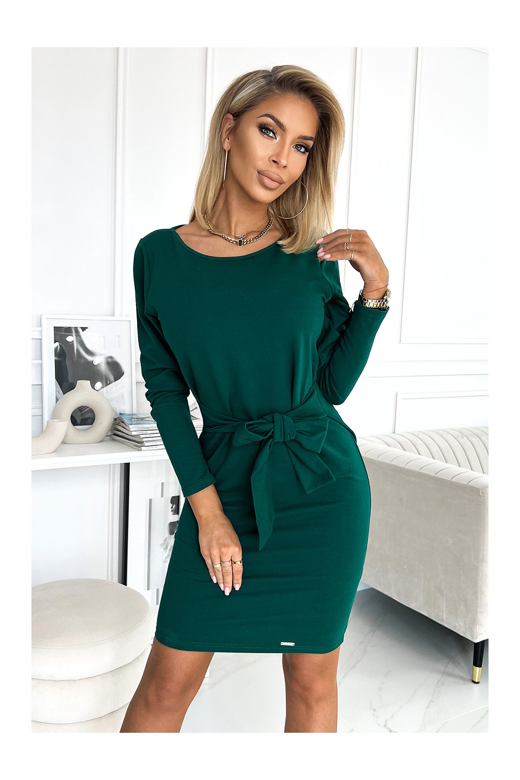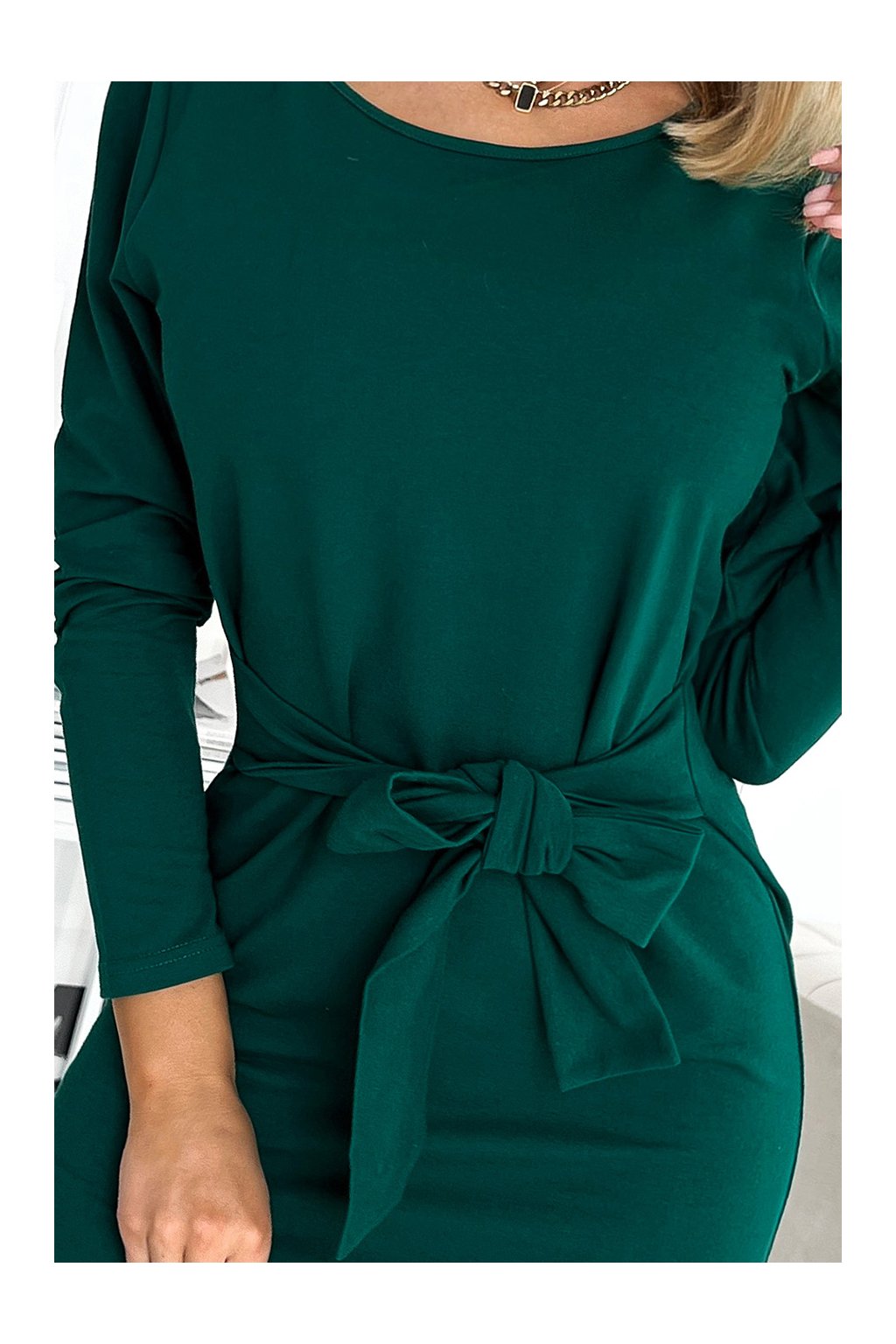 394-1 Šaty s dlouhým rukávem a zavazováním v pase - zelené
