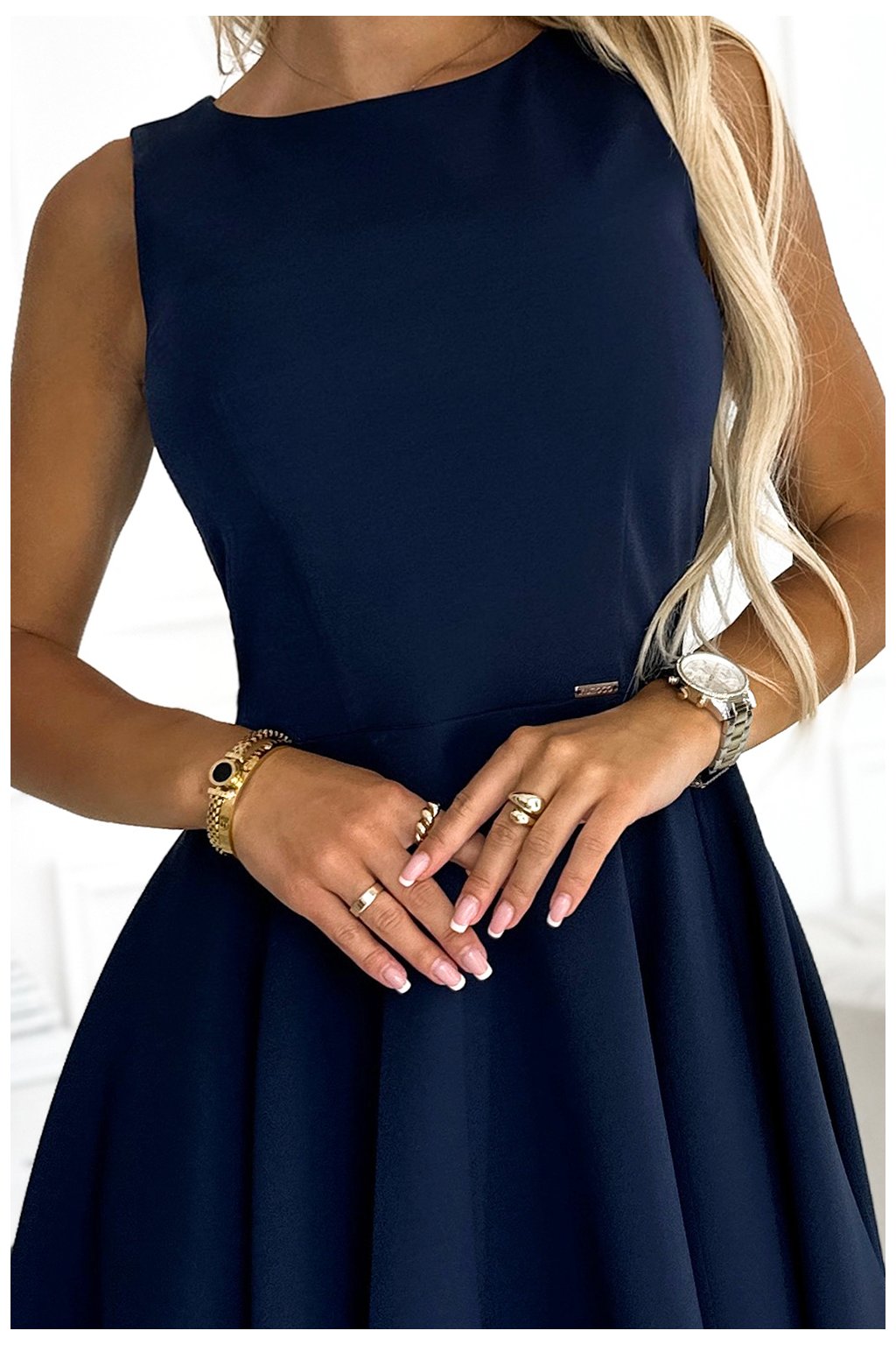 397-2 Elegantní šaty s delším zadním dílem - tmavé modré