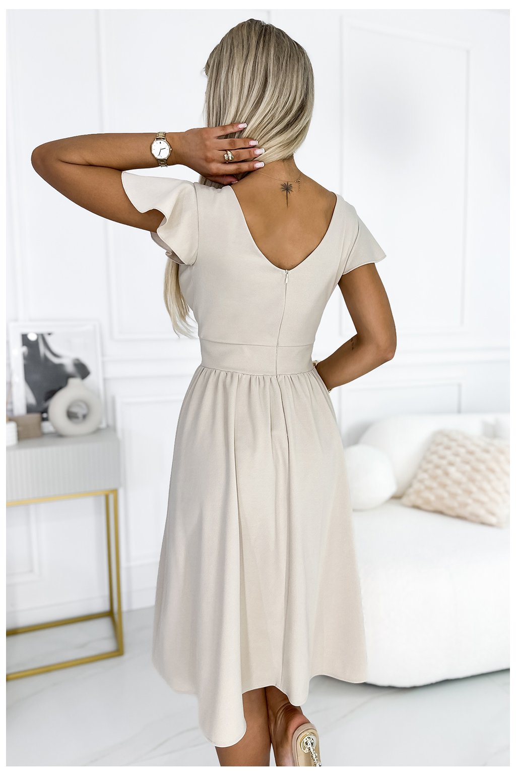 425-7 MATILDE Šaty s výstřihem a krátkým rukávem - béžová barva