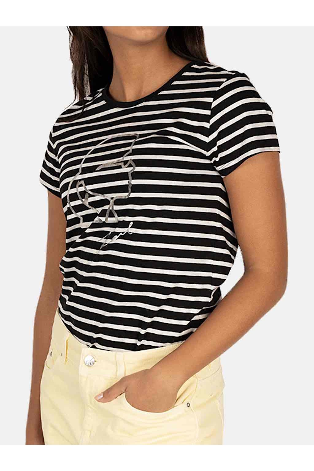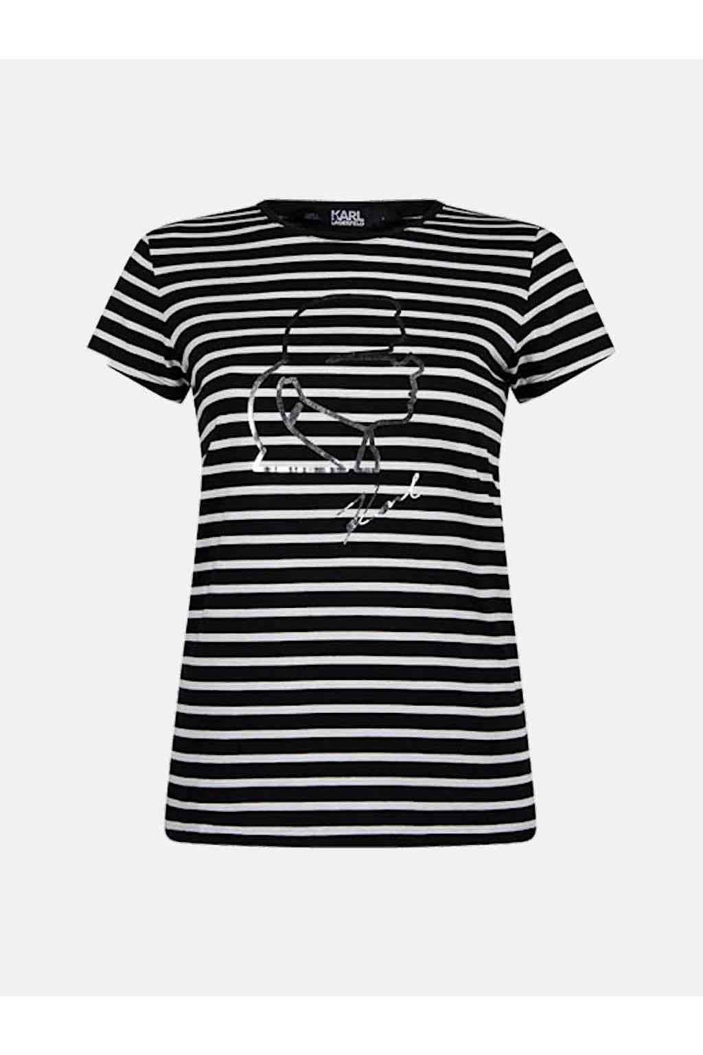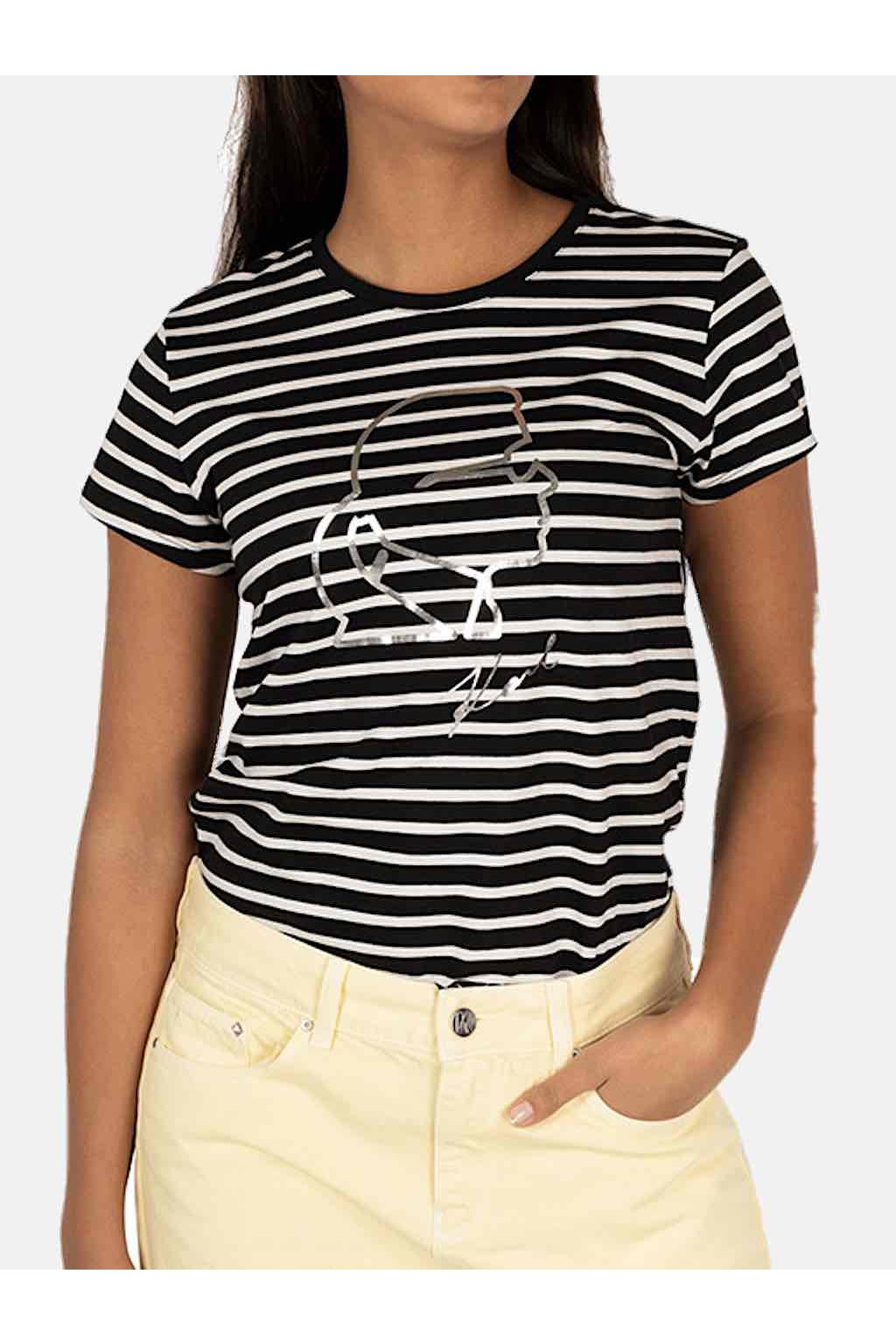 Černobílé dámské bavlněné tričko z kolekce KARL Lagerfeld.