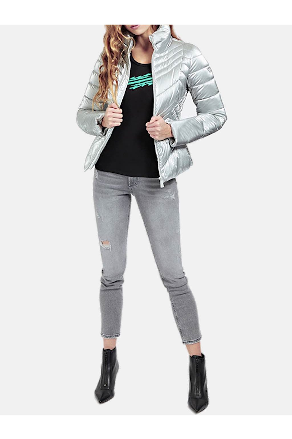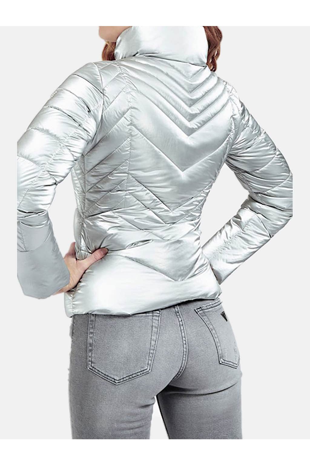 Stříbrná zimní dámská bunda z kolekce Guess.